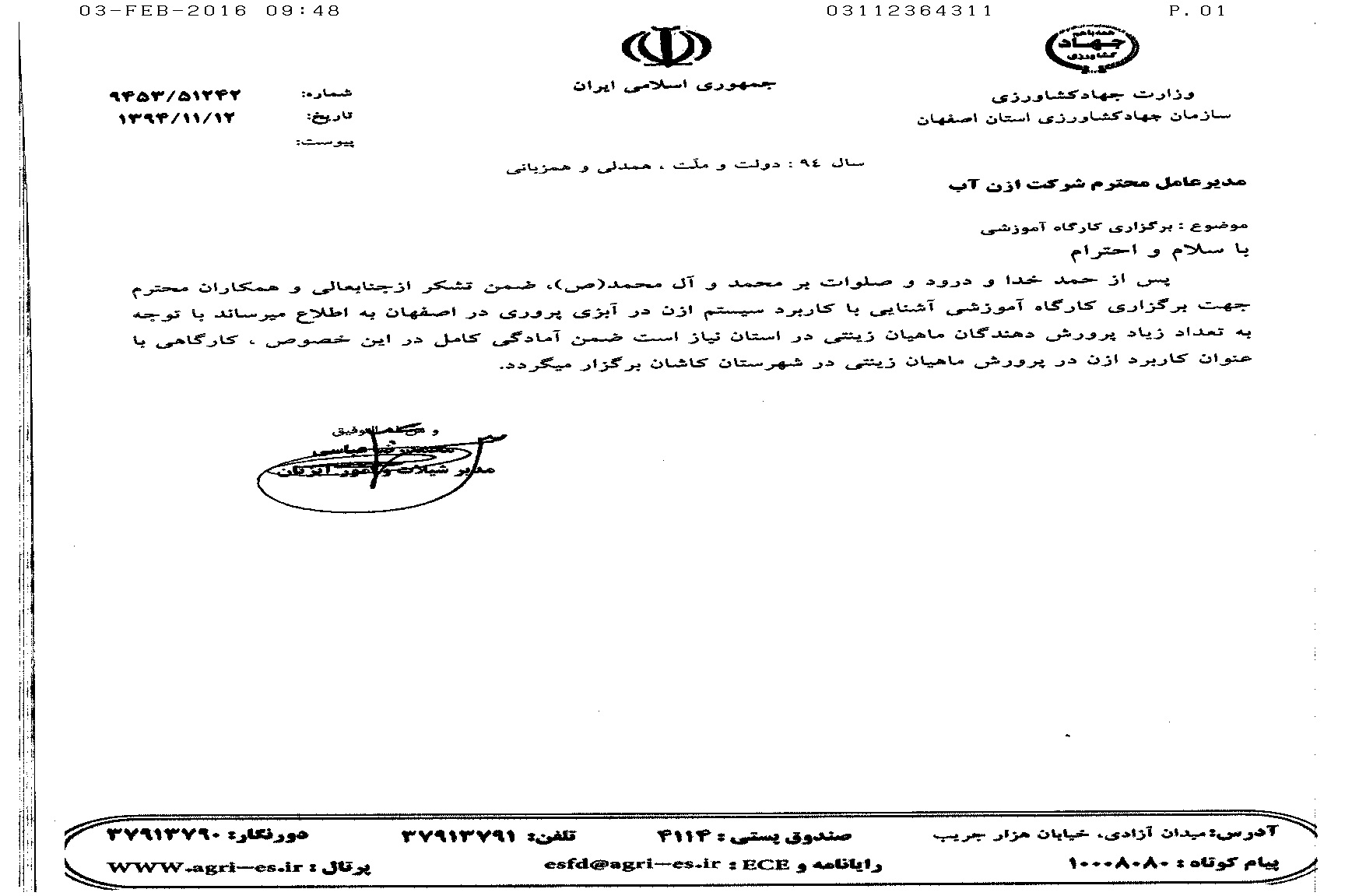 کارگاه آموزشی ازن در شیلات با همکاری اداره جهاد کشاورزی مشهد